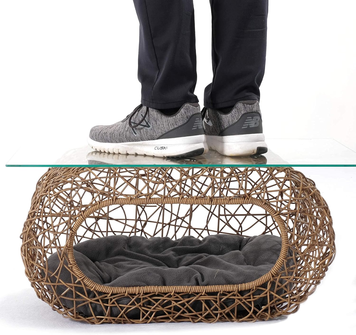 - CAT CAVE BED WITH STURDY METAL FRAME: Built with metal backbone frame and loose woven rattan looks like a work of art, cat cave bed can shield pets cats and kitty inside from harms way