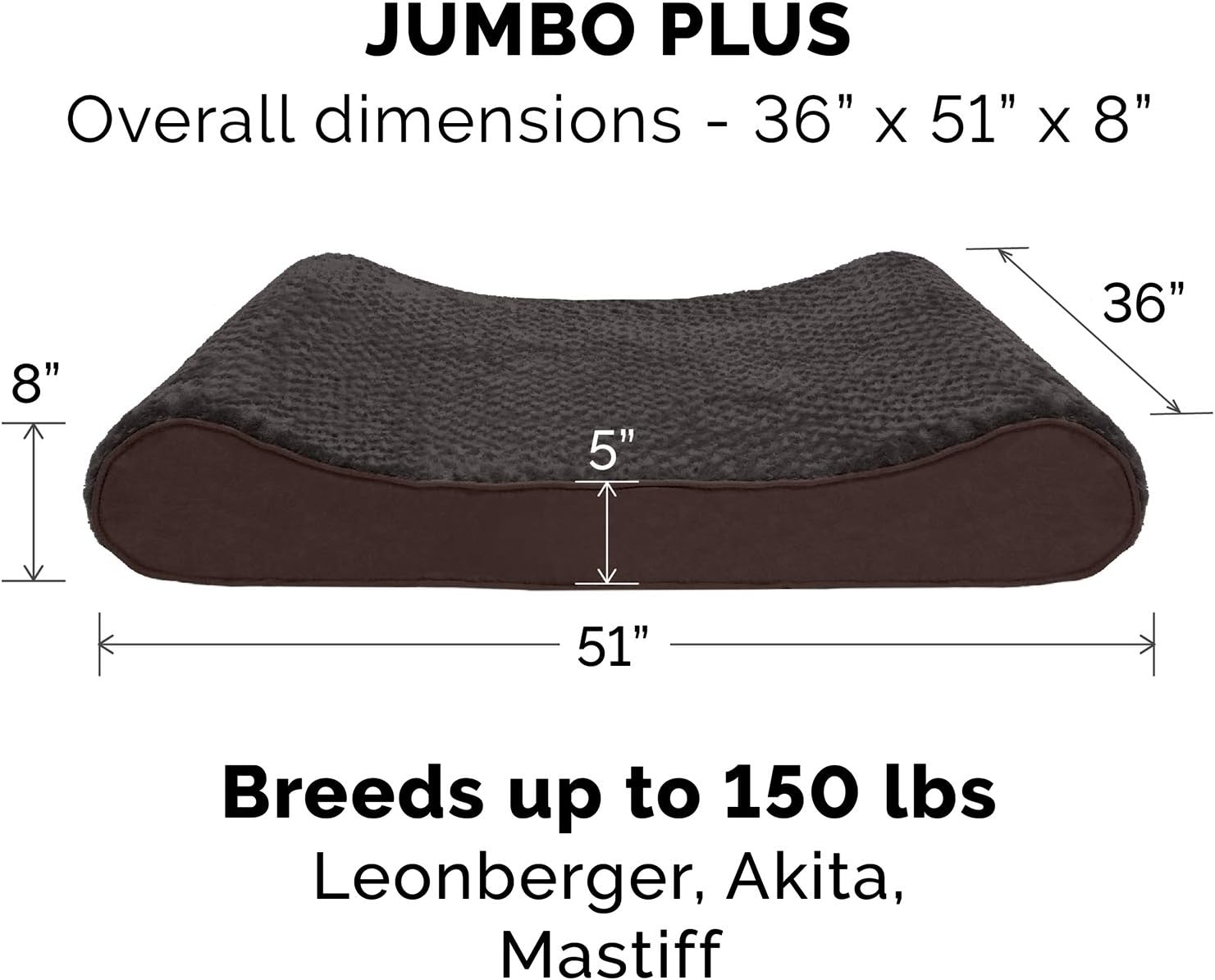- PRODUCT DETAILS: Chocolate; Jumbo Plus, 36" x 51" x 8" (5" Center; 8" Edges)