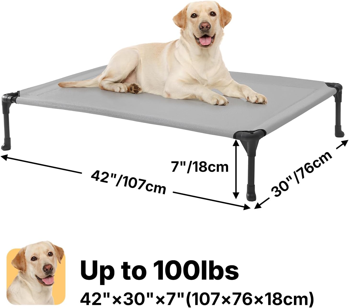 - Comfort: This elevated dog bed is made from Telsin fabric, which offers excellent breathability, providing a cool and comfortable resting environment for your pet. The elevated design of the raised dog bed isolates it from ground moisture, helping to prevent arthritis