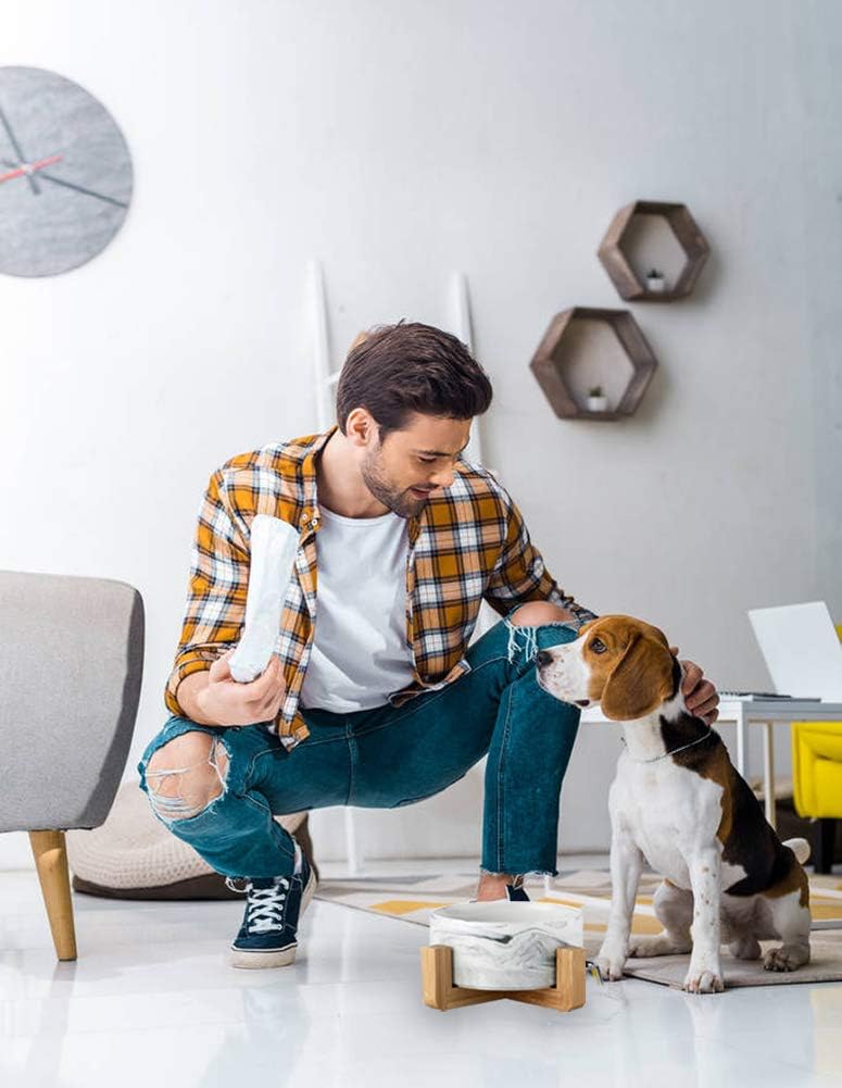 - Note: 1.The marble texture of the bowl surface is not printed, it is blended with ceramic materials, so the surface pattern of each bowl is different. This is normal if the texture of the bowl you received is different from the picture. 2. Please check the size before purchase (make sure it is suitable for your pet).