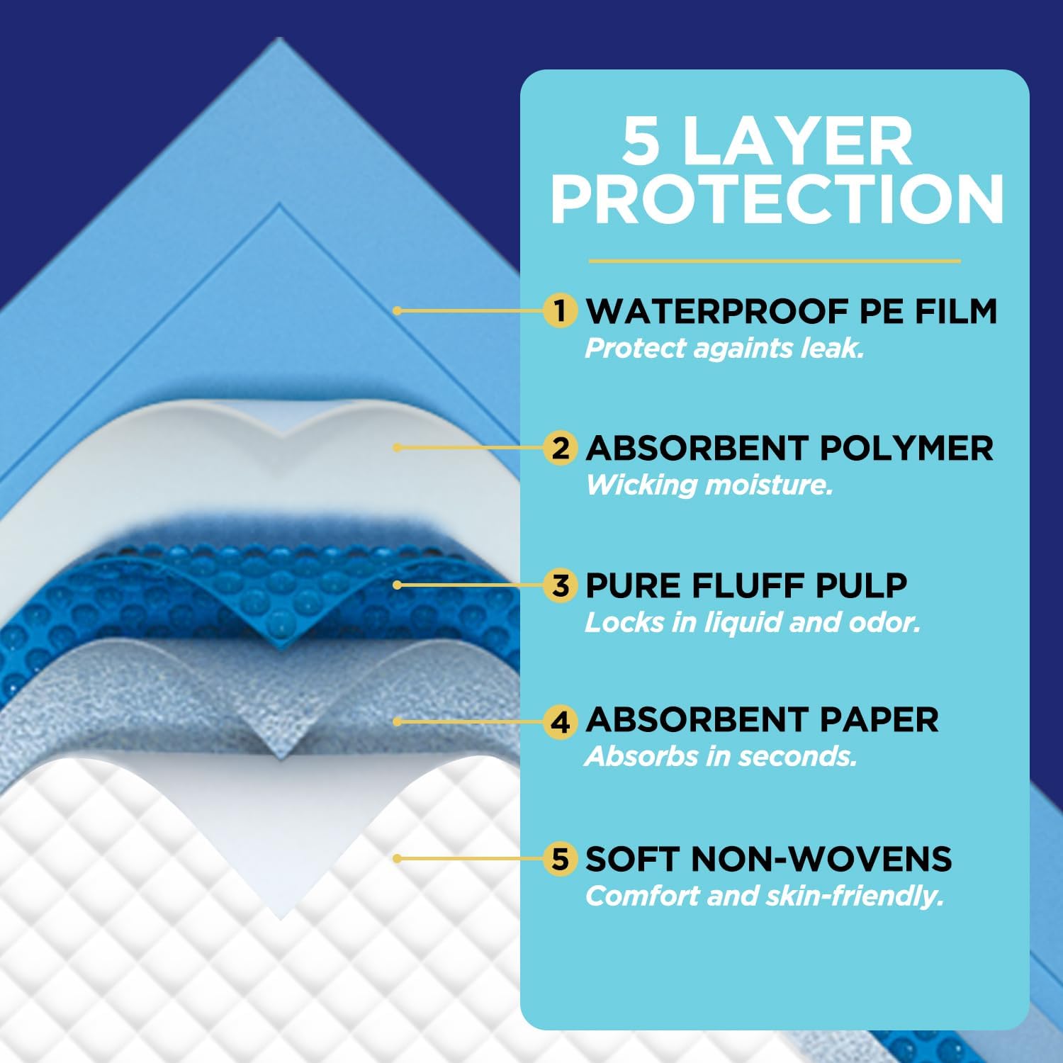 - ✔ Super Absorbing System---Mix imported fluff pulp and SAP factor,absorbent quickly lock in fluids and help prevent odor. soaking up 1300ml to 1700ml of water per bed mat.keeping liquid away from skin to promote sound sleep and peace of mind for adults or children.