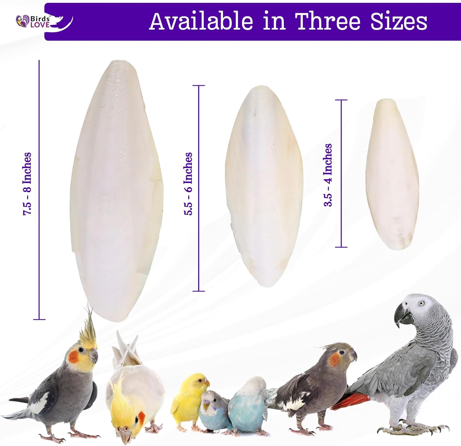 Birds LOVE 4-Piece Cuttlebone 3.5–4-Inch with Holder – Natural Calcium & Trace Mineral Block for Birds & Reptiles – Beak-Trimming Chew Supplement – Safe, 100% Pure, No Fillers
