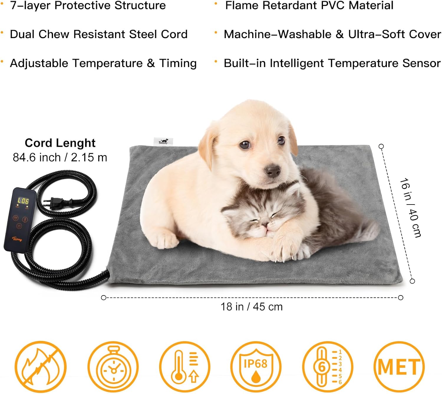 - Durable & Easy Care: Designed with dual chew-resistant cord protection and an ultra-soft, machine-washable cover. Simply wipe the inner pad for easy maintenance.
