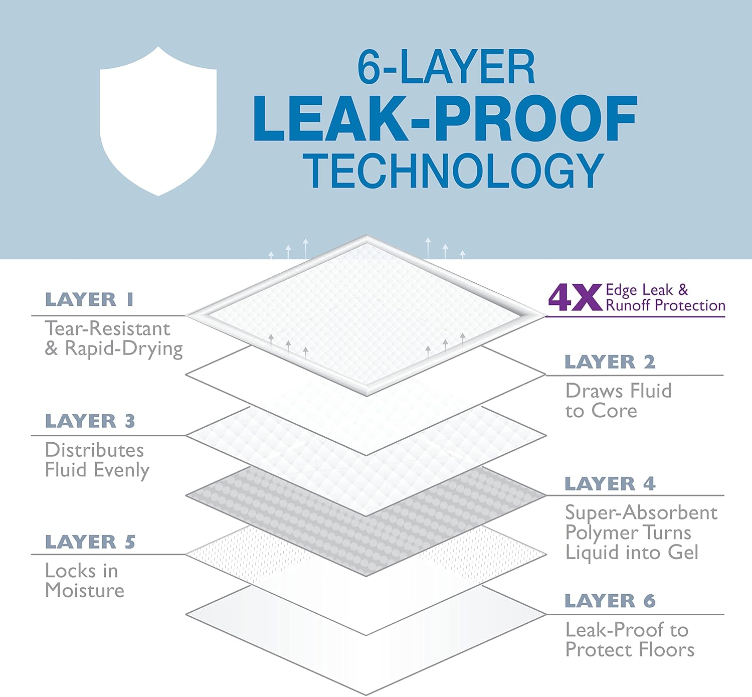 - 4X EDGE LEAK & RUNOFF PROTECTION - Dog potty pads feature a border that rises where exposed to liquids to prevent leaks and runoff