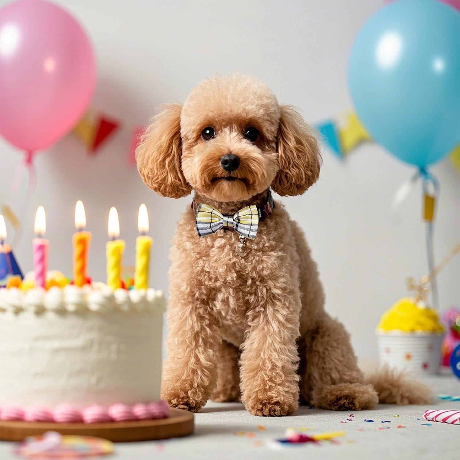 PET SHOW 8pcs Plaid Small Dogs Collar Bow Ties Puppies Cats Collar Charms Accessories Slides Attachment Bowties for Birthday Wedding Parties Assorted