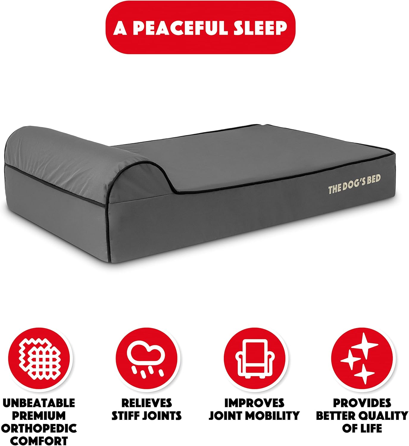The Dog’s Bed Orthopedic Headrest Dog Bed Large Grey/Black 40x25, Memory Foam, Pain Relief: Arthritis, Hip & Elbow Dysplasia, Post Surgery, Lameness, Veterinary Approved, Waterproof Washable Cover
