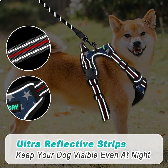 BARKBAY No Pull Dog Harness Large Step in Reflective Dog Harness with Front Clip and Easy Control Handle for Walking Training Running(Star,L)