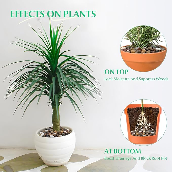 - 【Natural Polished Gravel with A Smooth Effect】 - These natural river stones are natural lightly polished and have a smooth finish with no rough edges, comes in a variety of natural colors, long-lasting beauty. The river rocks include a variety of different shades of browns, whites and black rocks, you can add beauty to your needs.