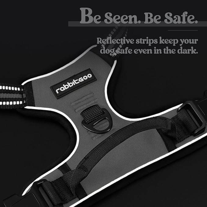 rabbitgoo Dog Harness No Pull with 2 Leash Clips, Adjustable Soft Padded, Reflective Oxford No Choke Pet Vest with Easy Control Handle for Medium Sized Dogs, Grey, M