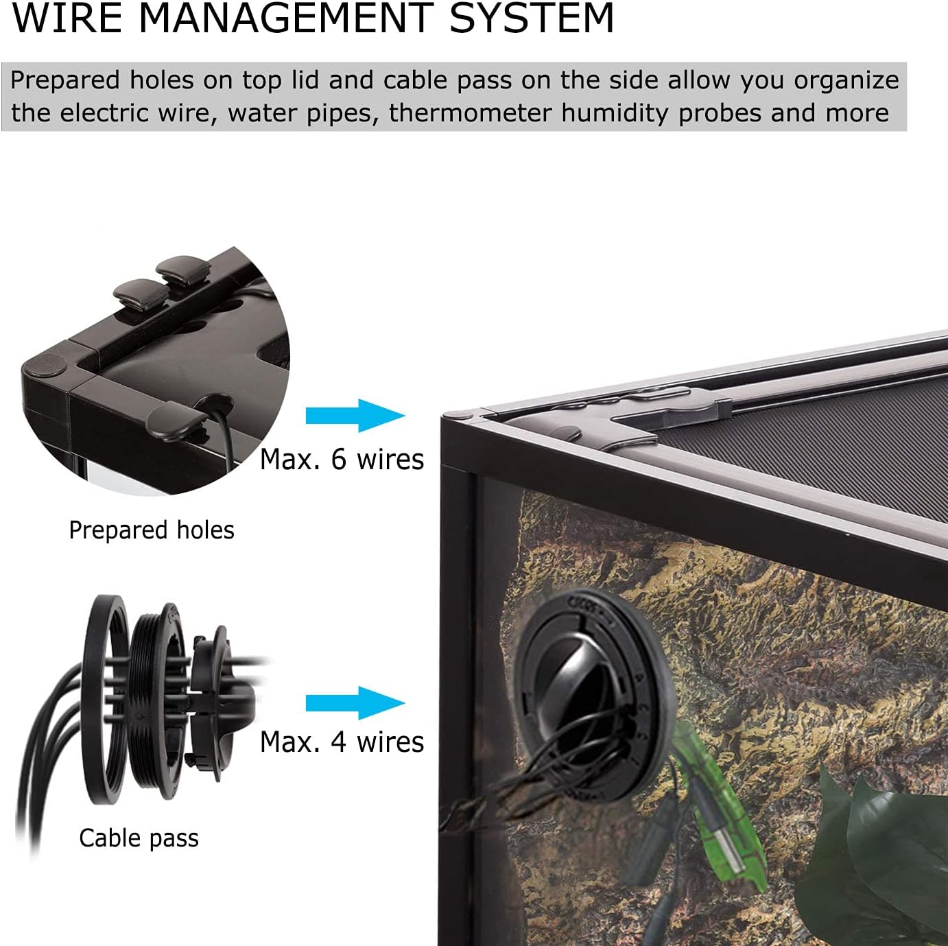 - 【Great Wire Organization】Pre-designed 6 closable inlets for wires and tubing and an extra cable pass allow 4 wires pass through, a perfect way to organize your power wire, hygrometer wire, thermometer wire and other cables easily and neatly.