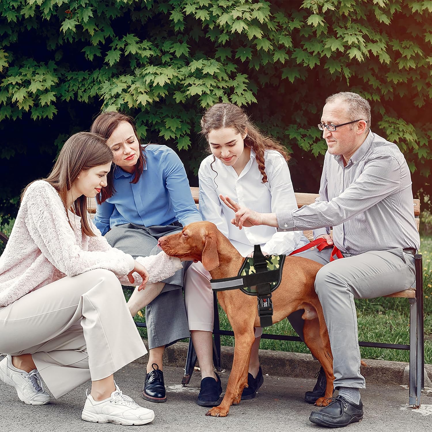Dogline Dog Harness, Reflective No-Pull Adjustable Vest with Handle for Walking, Training, Breathable, No - Choke Harness for Small, Medium or Large Dogs Room for Patches Girth 33"-46" in Green Camo
