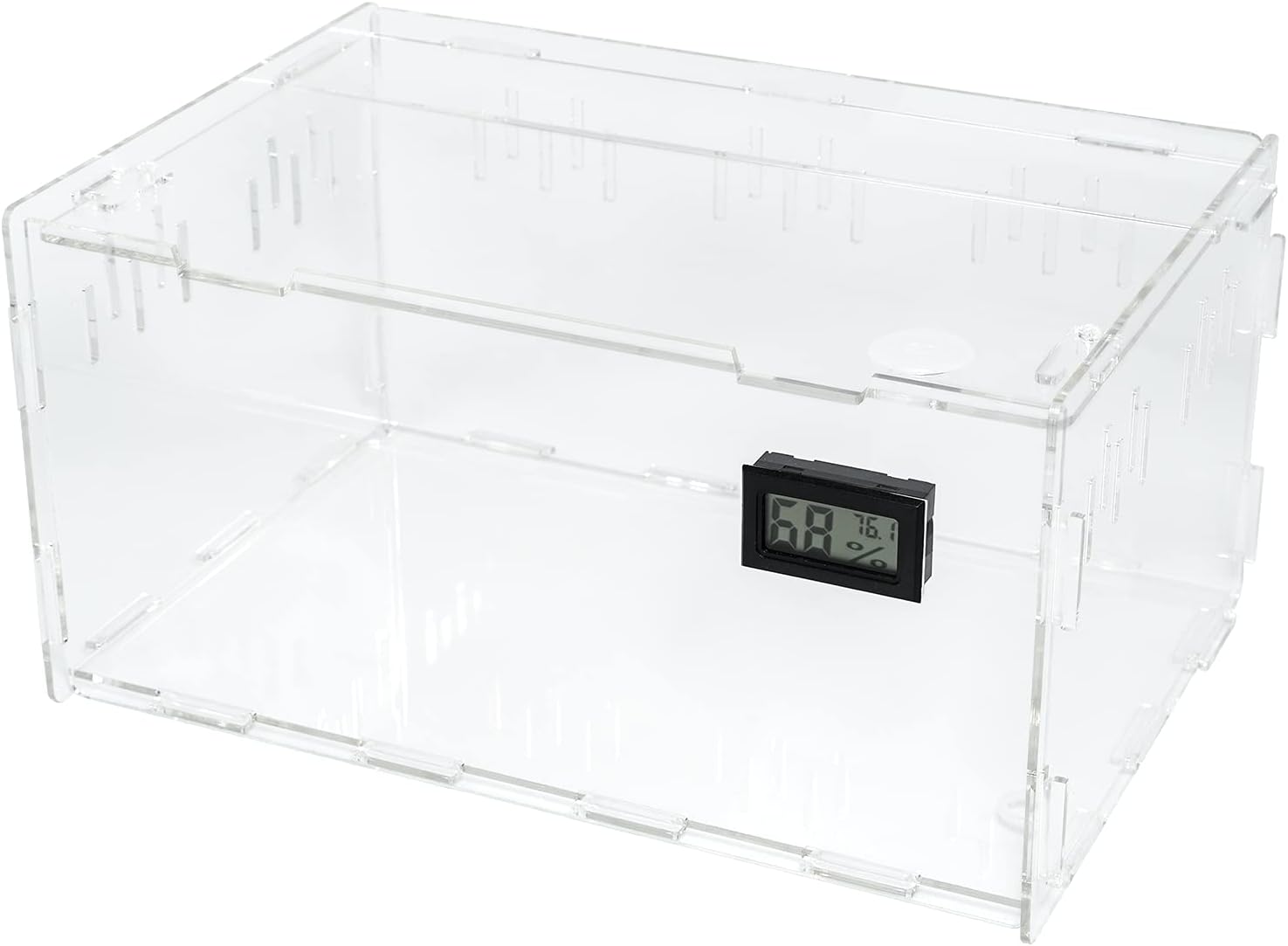 BETAZOOER Reptile Terrarium Breeding Tank Acrylic Reptile Feeding Box with Temperature Hygrometer (15.3"x9.7"x7.6")