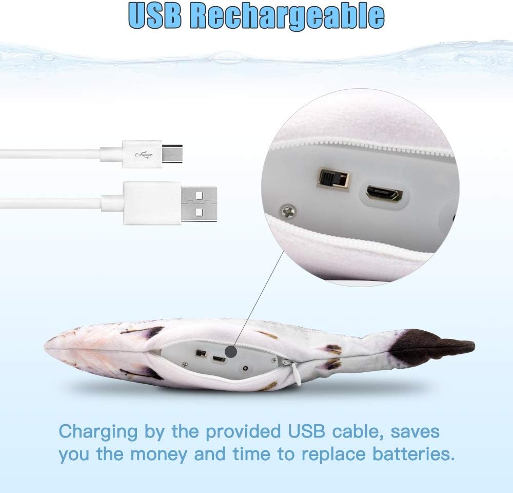 - 【USB Chargeable】This wiggle fish toy is USB chargeable which saves you from the hassle and costs to replace batteries. The infused motor is detachable for convenient cleaning of the cat toy.