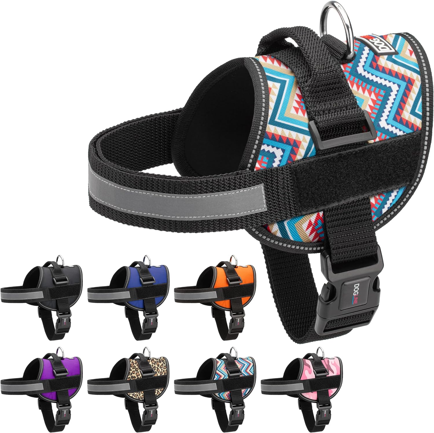 Dogline Dog Harness, Reflective No-Pull Adjustable Vest with Handle for Walking, Training, Breathable, No - Choke Harness for Small, Medium or Large Dogs Room for Patches Aztec Design 2 XS 15"-18"
