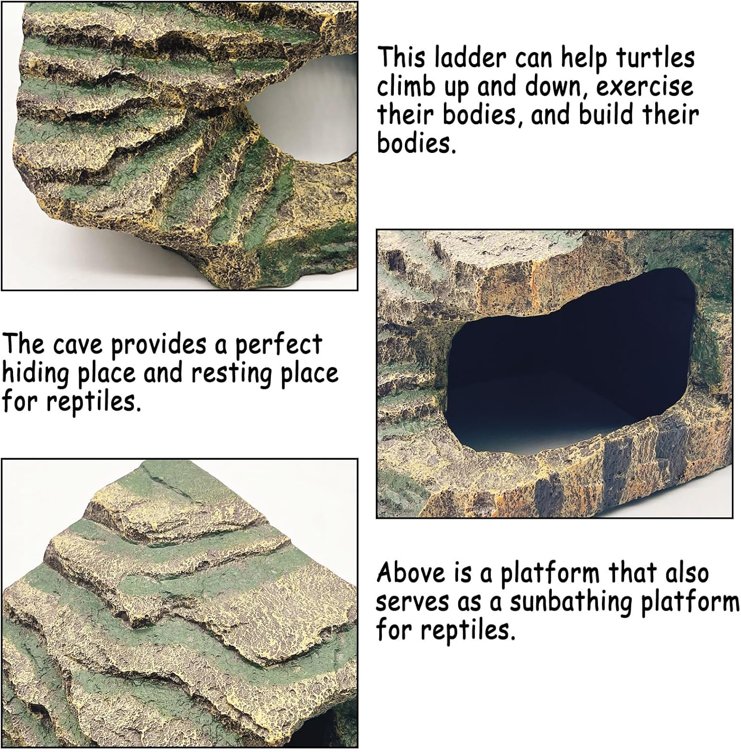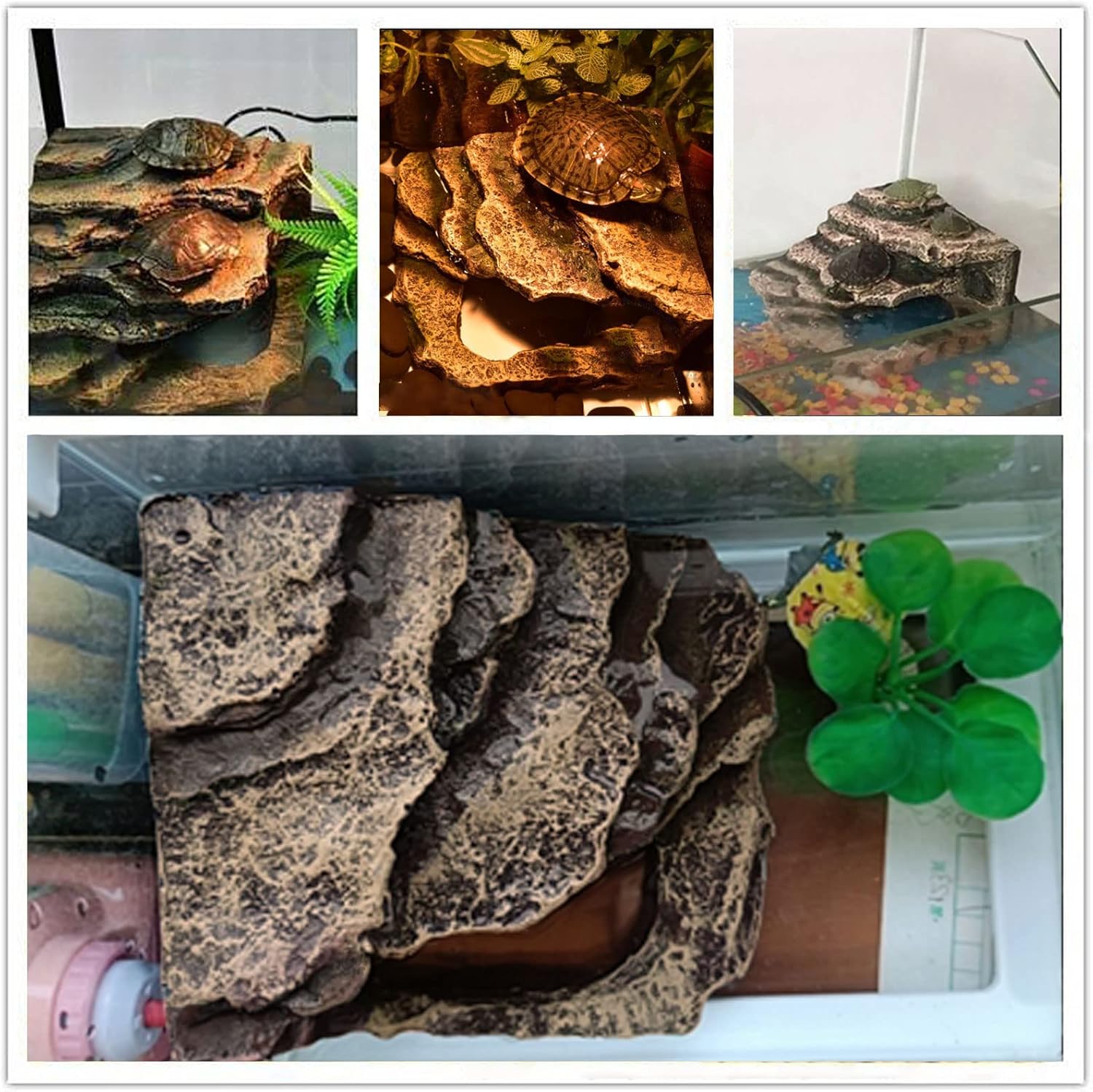 kathson Turtles Basking Platform Reptile Hiding Cave Hideouts for Aquatic Turtles, Frog, Newts and Salamanders