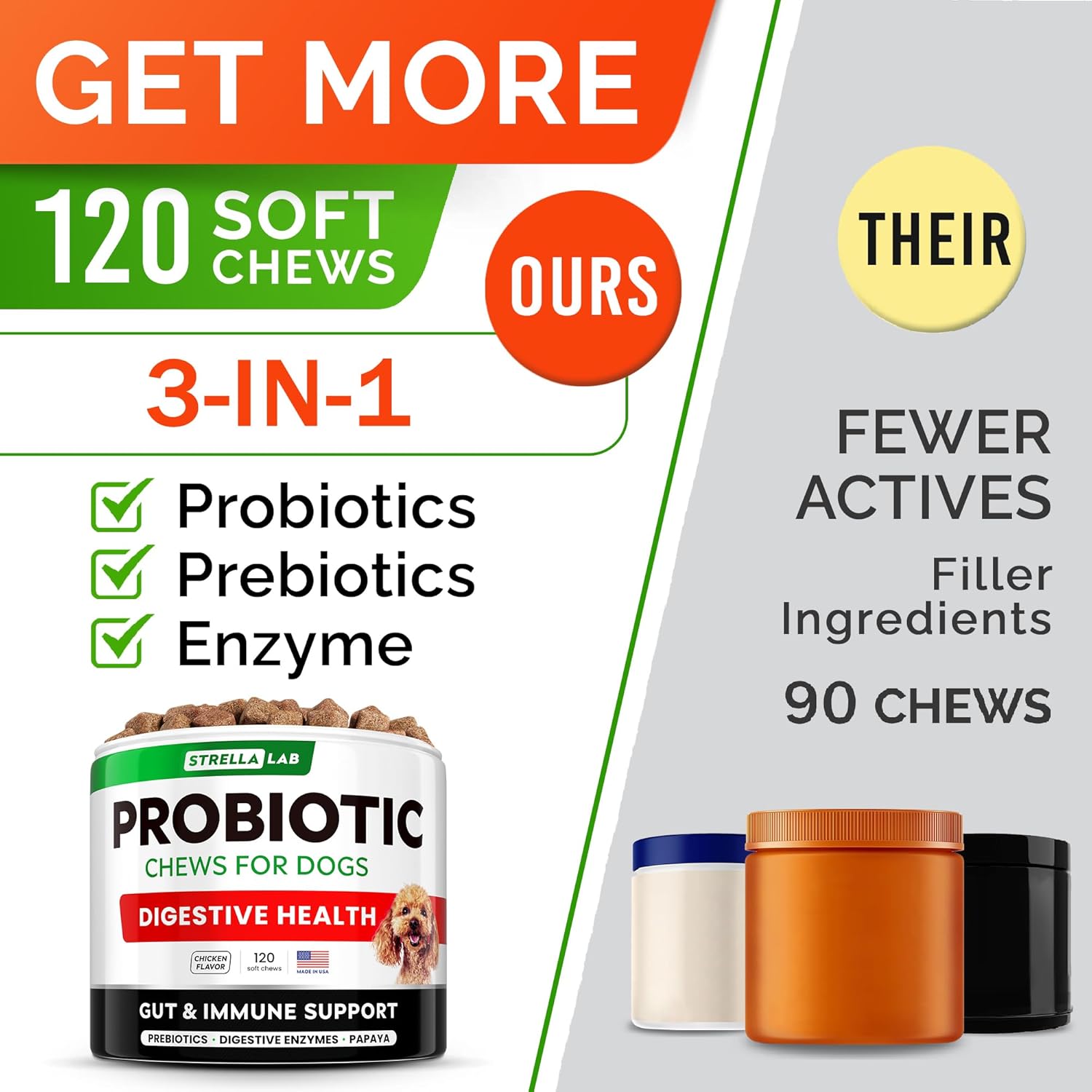 STRELLALAB Pet Probiotics for Dogs & Digestive Enzymes + Digestion & Gut Health Treats, Dog Probiotics Chews, Fiber Supplement, Anti Diarrhea, Constipation, Upset Stomach&Gas Relief, Canine Prebiotic