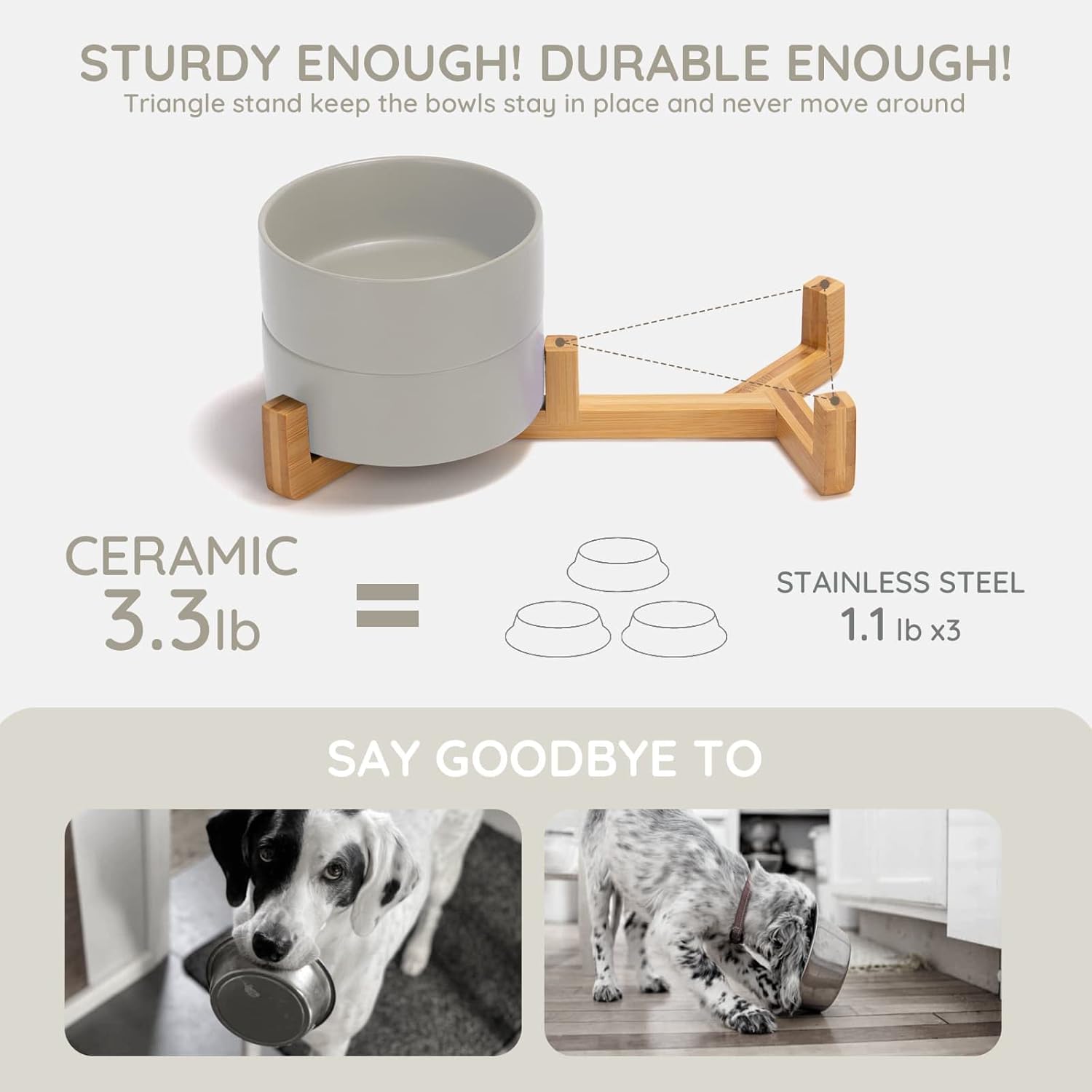 - Natural Wooden Stand:Unique wooden stand can effectively prevent food from spilling and keep the floor clean and tidy. Non-Slip bowl base, making it easy to pick up and put down