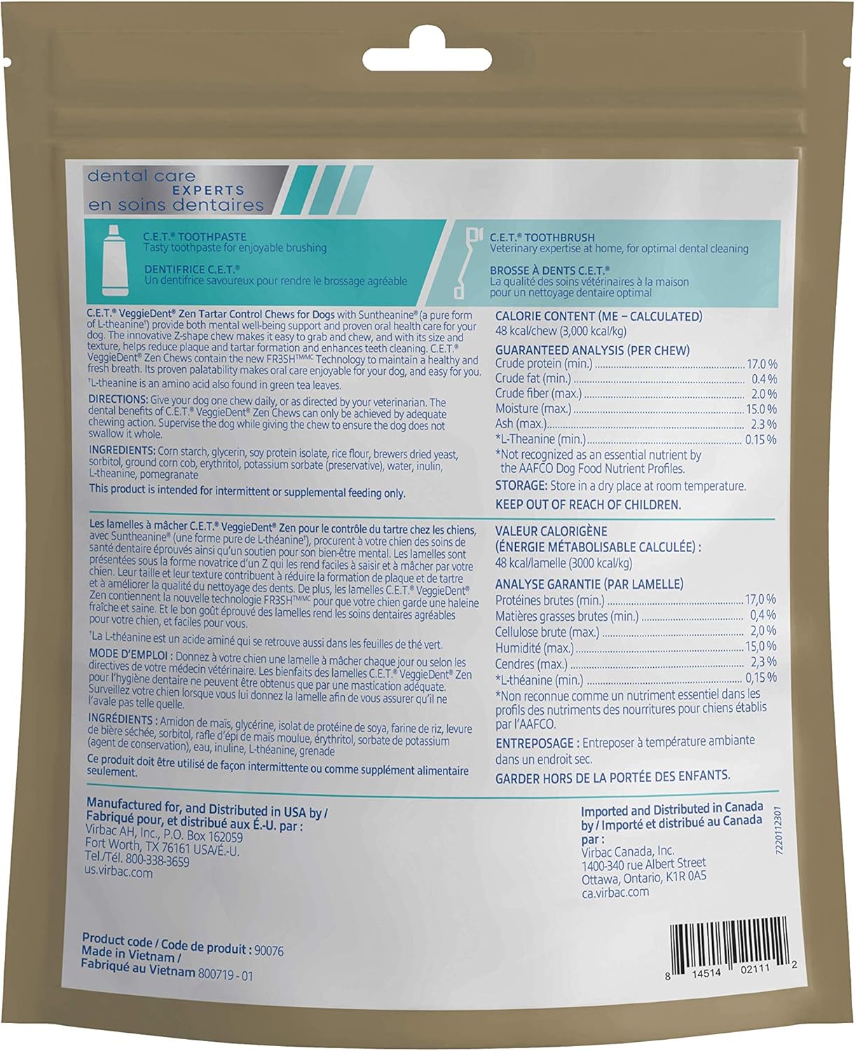 Virbac C.E.T. VEGGIEDENT Zen Tartar Control Chews for Dogs - Small