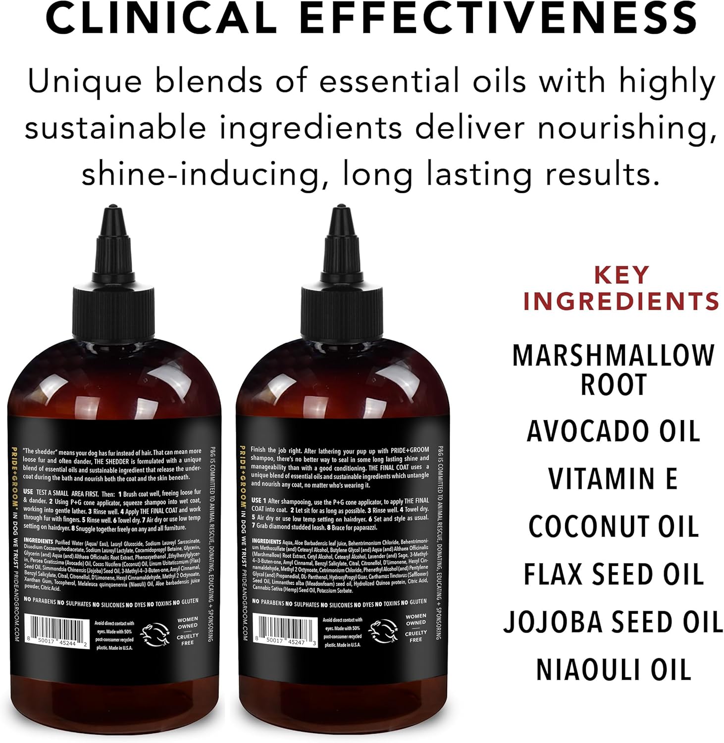 - PRIDE+GROOM BOX SET: Beautiful gift box that includes THE SHEDDER shampoo and THE FINAL COAT conditioner packed with essential oils & moisturizing ingredients for deshedding fur coats.