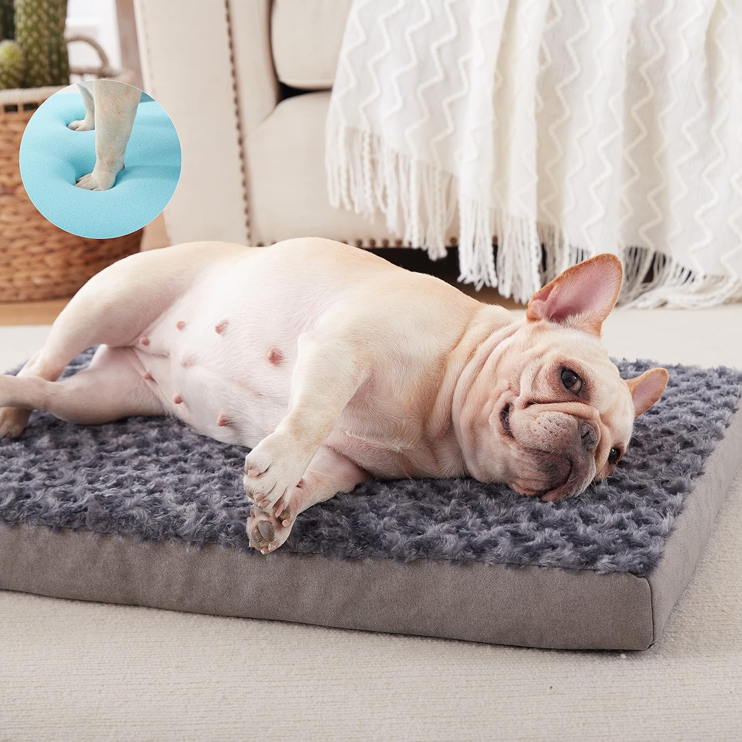 - CertiPUR-US Certified Foam: Gohoo Pet' dog bed is designed with cooling gel memory and high-density bamboo charcoal support foam, has a constant temperature effect, which can keep your dog warm in winter and cool in summer. High-density foam supports the dog's body and reduces joint pressure.