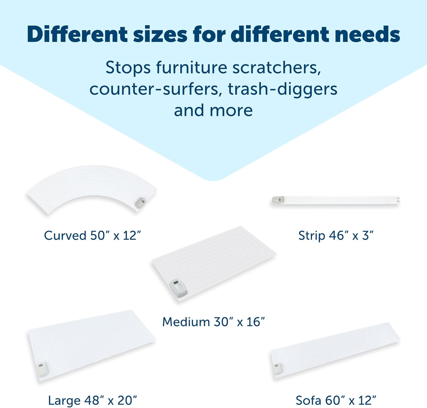 - Training Mat: Place ScatMat on countertops, the couch, in doorways or near trash cans to teach dogs and cats which areas are off-limits; When your pet steps on the mat, they will feel a safe yet startling correction to deter them from restricted areas