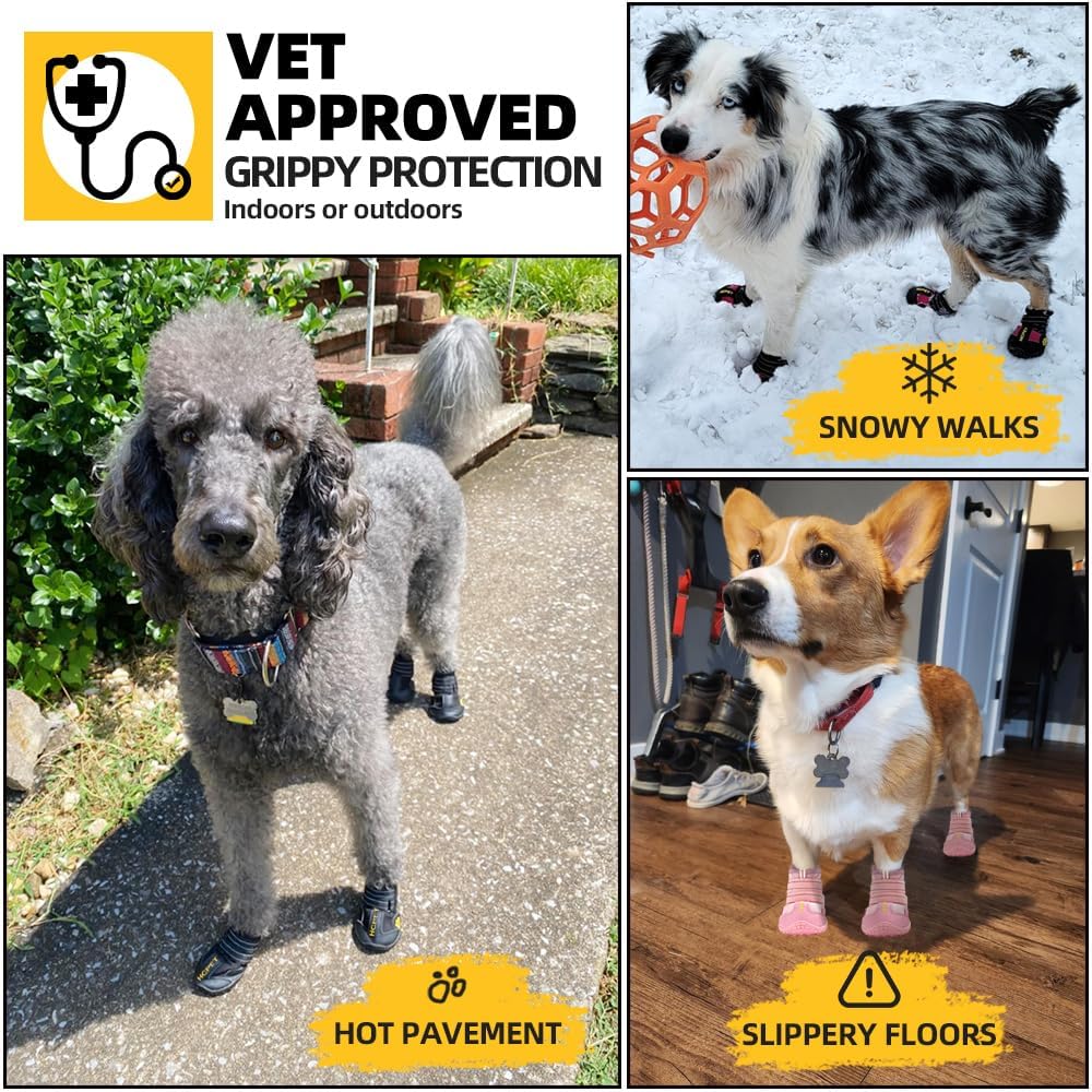 Hcpet Dog Shoes, Dog Boots for Large Dogs, Waterproof Dog Booties Paw Protector for Summer Hot Pavement, Winter Snowy Day, Outdoor Walking, Indoor Hardfloors Anti Slip Sole Black Size 7