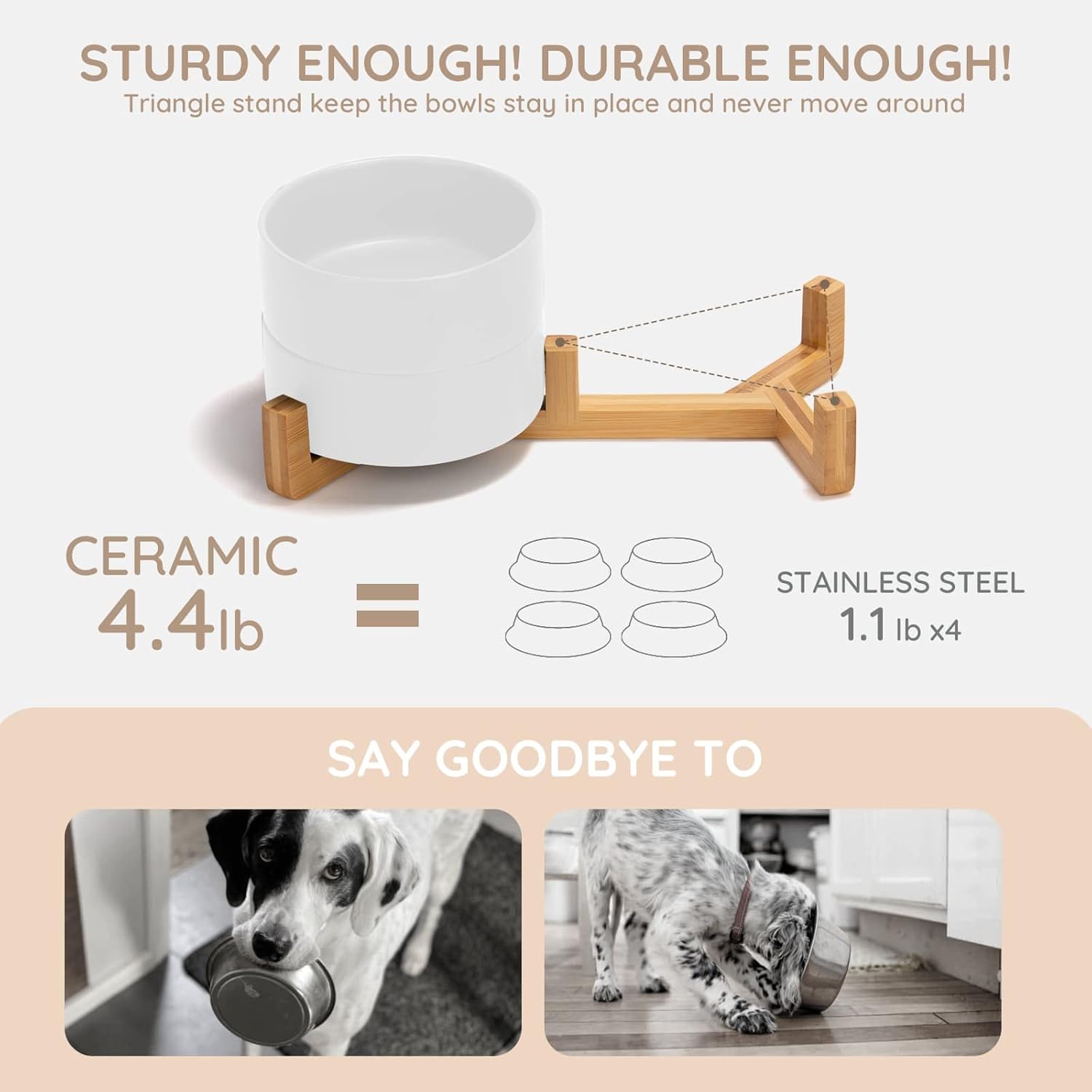 SPUNKYJUNKY Ceramic Dog and Cat Bowl with Wood Stand Non-Slip Matte Glaze Weighted Food Water Set for Cat Medium Dog 28.7 OZ