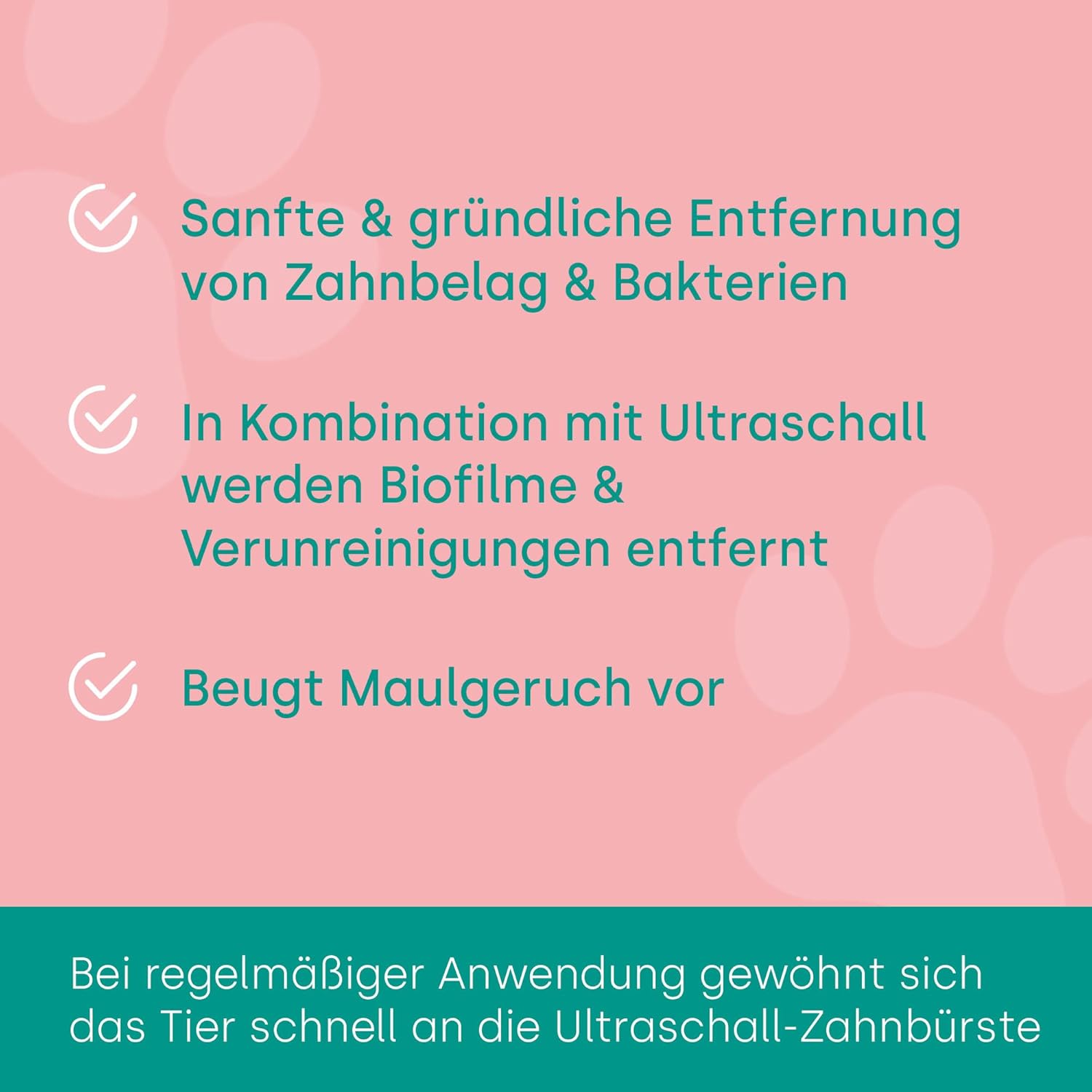 - New formulation suitable for all dogs, cats and other pets. When used with the emmi-pet ultasound system cleaning process is completely silent, without vibrations and without brushing. With our globally patented emmi-pet ultrasound technology method, you only have to gently touch next to teeth and gums with bristlehead. Powerful ultrasound waves will deep clean – completely without scrubbing and brushing. Even most anxious dogs will get used to this new cleaning process quickly and will feel comfortable having their teeth and gums cleaned.