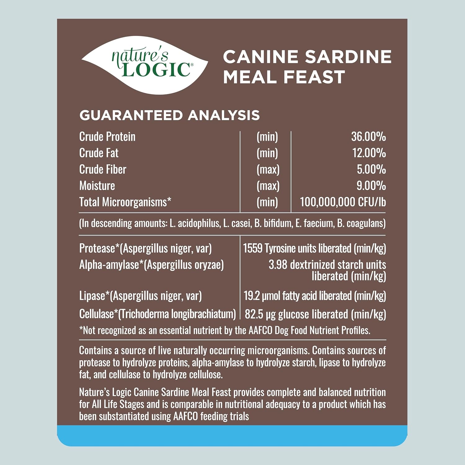 NATURE'S LOGIC Dry Dog Food - 100% Natural - No Synthetics - for All Ages, Sizes, Breeds - Free from Common Allergens, High Protein - Sardine Meal Feast, 25lbs