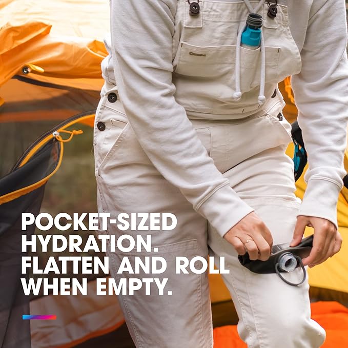 - SKI, HIKE, BIKE & CLIMB COMPATIBLE: The Stow fits flush in ski pants and coat pockets, bike jerseys or fanny packs - flatten and roll when empty.