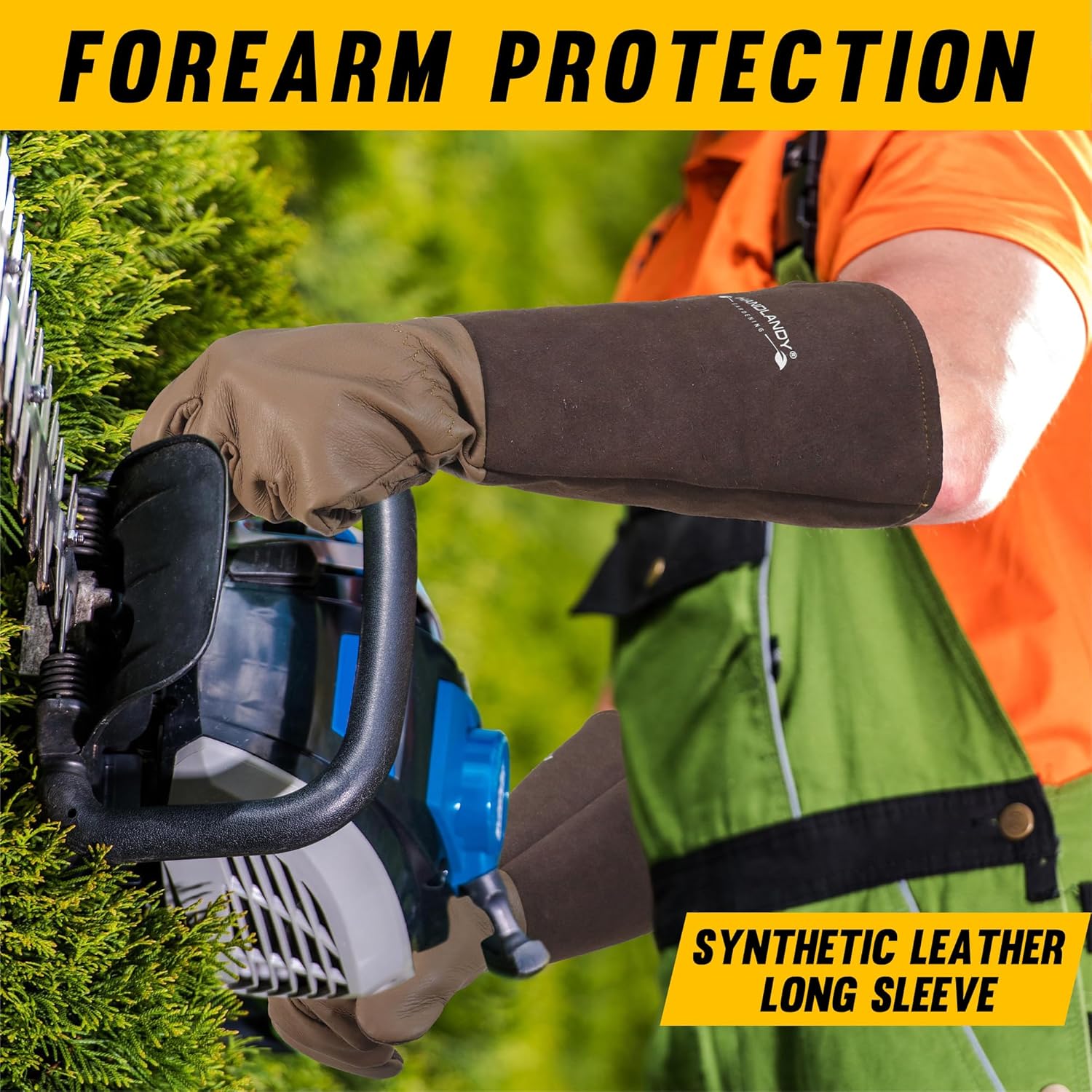 HANDLANDY Long Gardening Gloves for Men & Women, Cowhide Leather Rose Pruning Gloves- Breathable & Durable Gauntlet Glove (Medium, Brown)