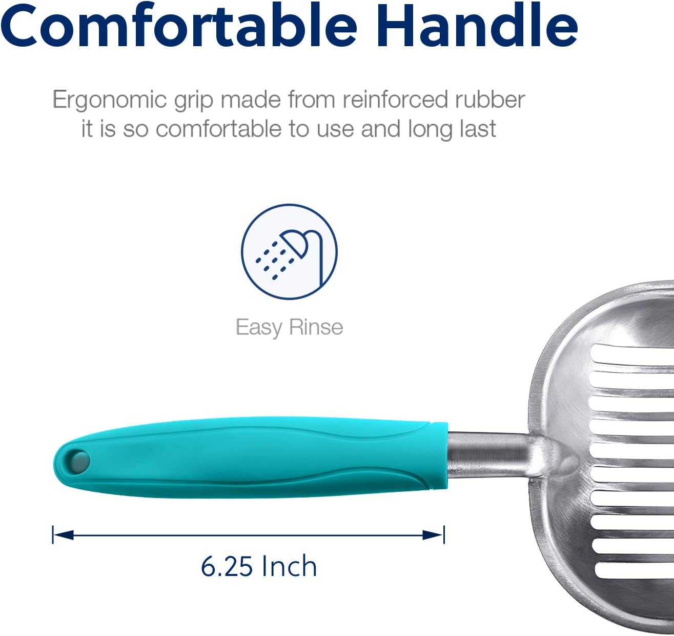 - [Features]: WePet made this scooper durable with heavy duty quality. After investigation with thousands thoughtful users, we finally make an improvement of removing the serrated edge as mentioned on reviews. The body is waterproof and very easy to clean, rust-resistant and corrosion resistant. It’s highly recommended by cat lovers for everyday use.