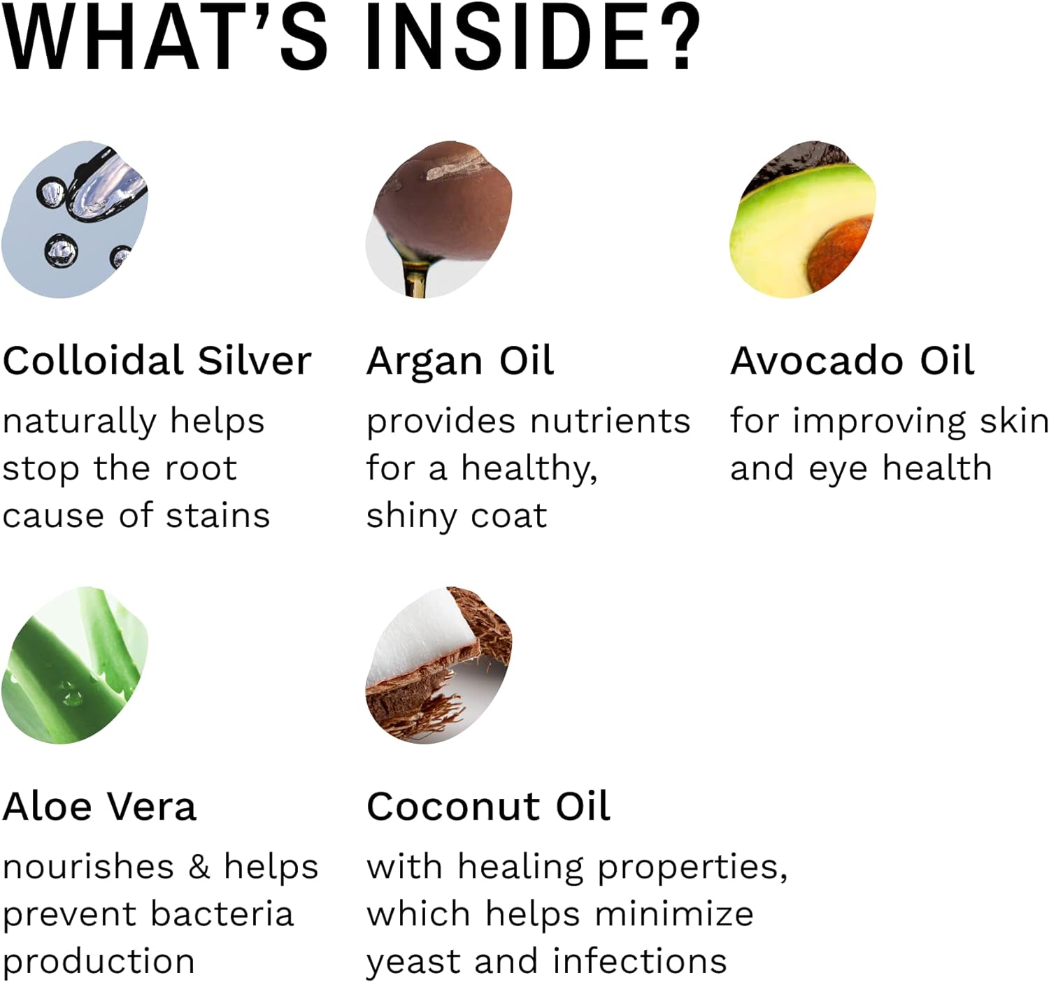 - Step 1 in 3-Step System - Eye Envy Tear Stain Facial Cleanser gently washes away crusty debris and eye discharge with this natural foaming cleanser. Foaming, tearless formula contains a 30PPM Colloidal Silver to help control the causes of tear and beard stains.