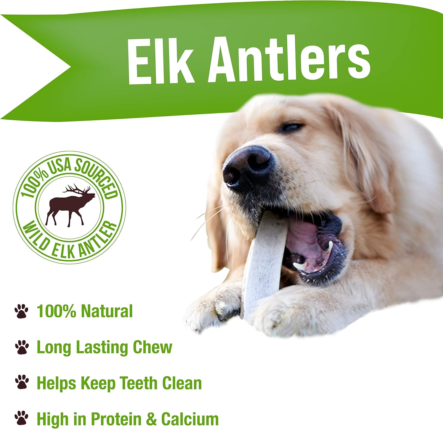 - MADE IN USA - Our bag contains 2 USA sourced Elk Antler Large Chews, 6-8" in length,