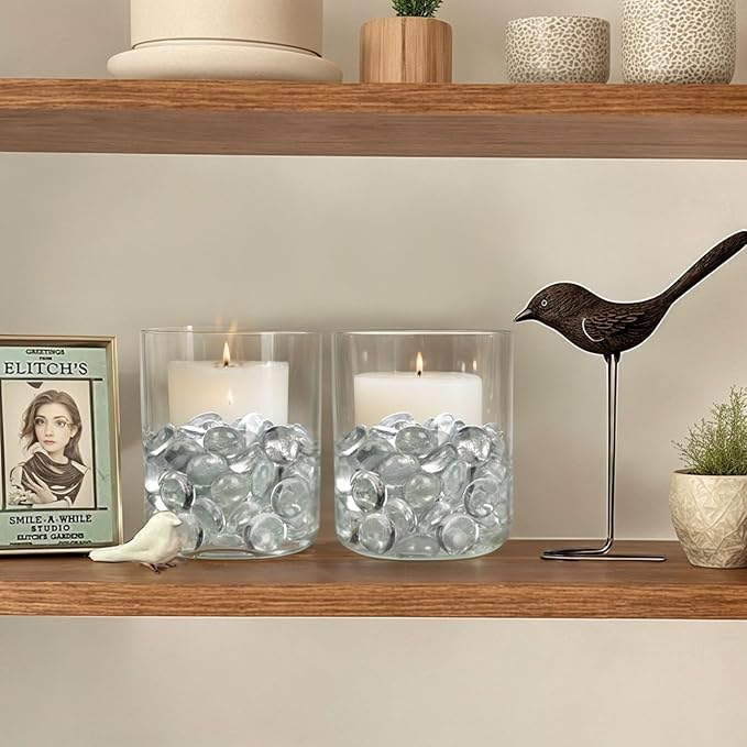 - Translucent Glass Pebbles: light will shine through, shinning in the sun, these attractive flat marbles will be beautiful addition to floral arrangements, crafts, vases, candles, and so much more.