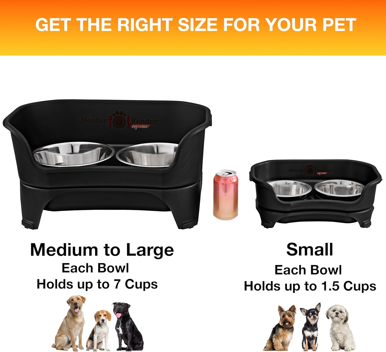 Neater Feeder Express Mess Proof Dog Bowls Elevated for Small Breeds Under 15 Lb, Made in USA, No Spill Raised Dog Food Bowl Stand, Stainless Steel Food and Water Bowl Set, Feeding Station, Black