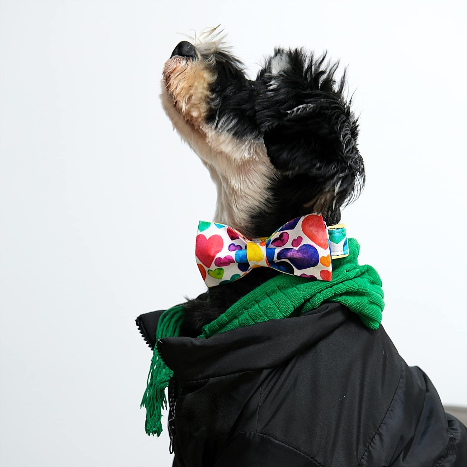 Lionet Paws Valentine's Day Dog Collar with Bowtie, Soft and Comfortable, Adjustable Collar for Medium Dogs, Neck 13.5-22 inches