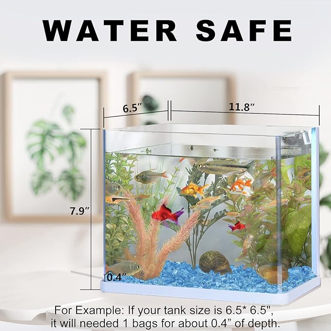 - How to Choice: Small crystal stones is 6-9mm (0.25”-0.35”), 0.93LB/Pack, about 0.3 liter capacity. For example, if your tank size is 6.3* 6.3", it will needed 1 bags for about 0.4” of depth