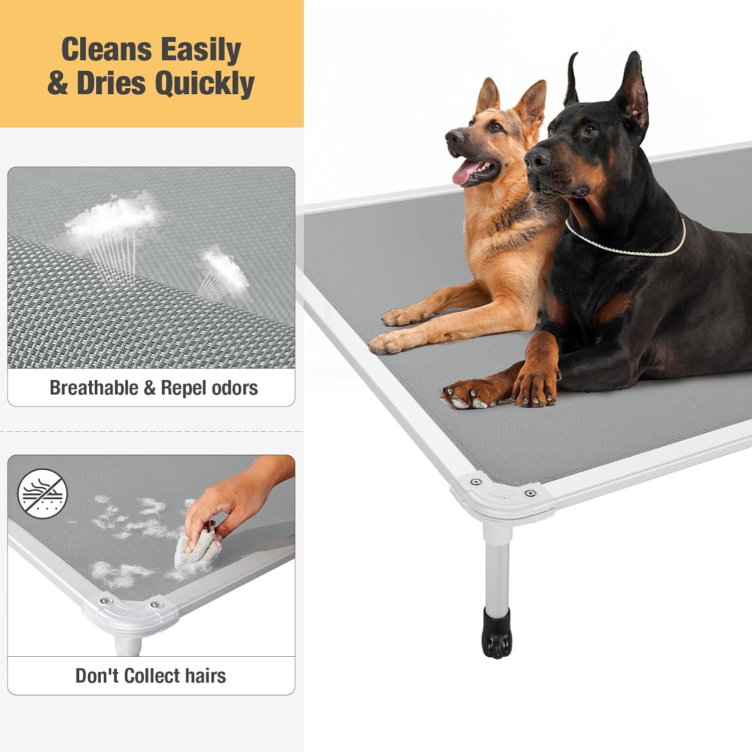 - Easy to Clean. For the pet hair, dirt, grime (or other stains brought by your dog from outside lawn), simply hose off with water and allow to dry. Besides, you can also wipe them clean with a wet towel.