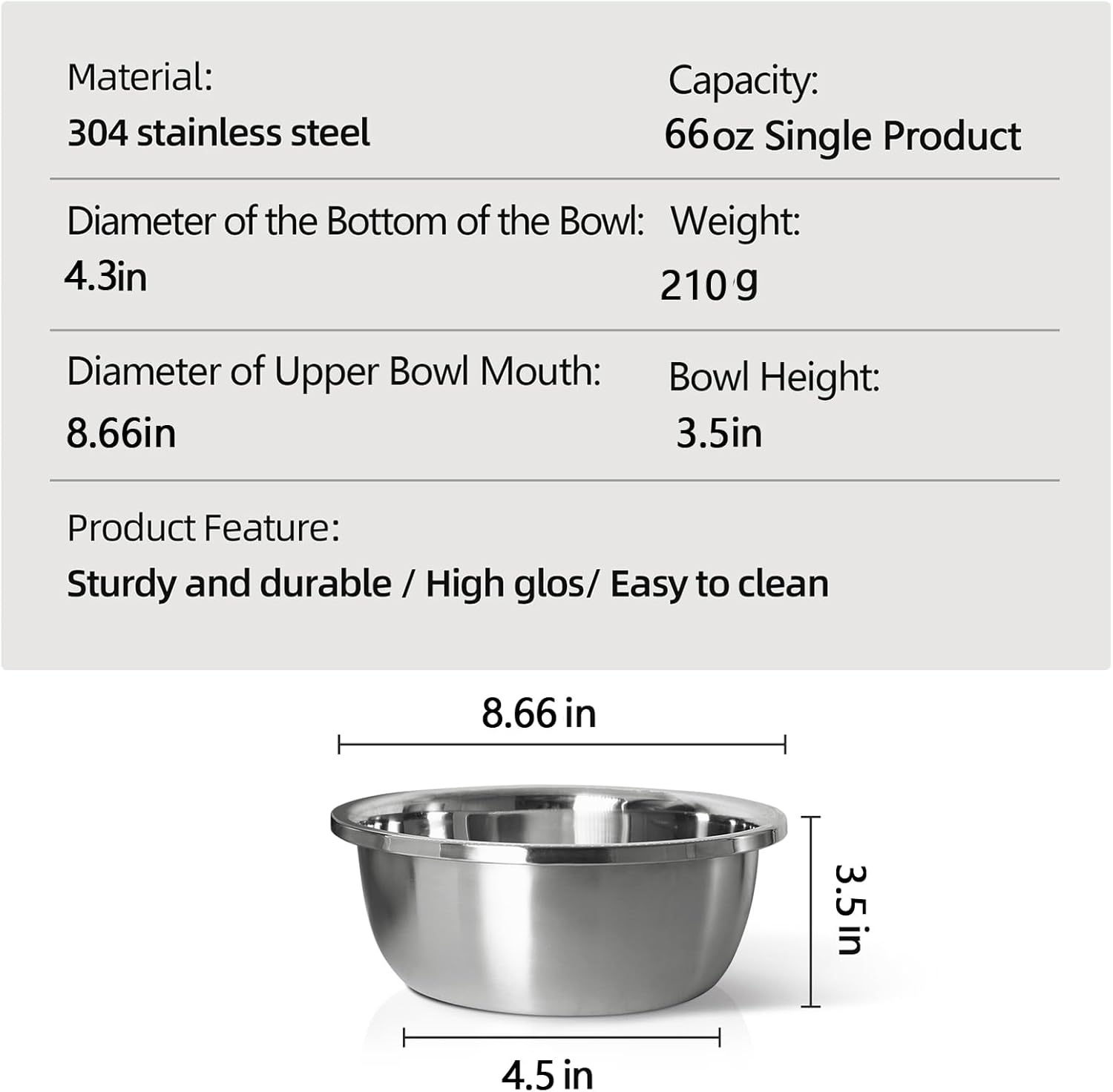 Stainless Steel Large Dog Food Bowl, 66 oz (10cup) Large Capacity Dog Water Bowl, Heavy Duty, BPA Free for Medium Dogs (2 pcs)