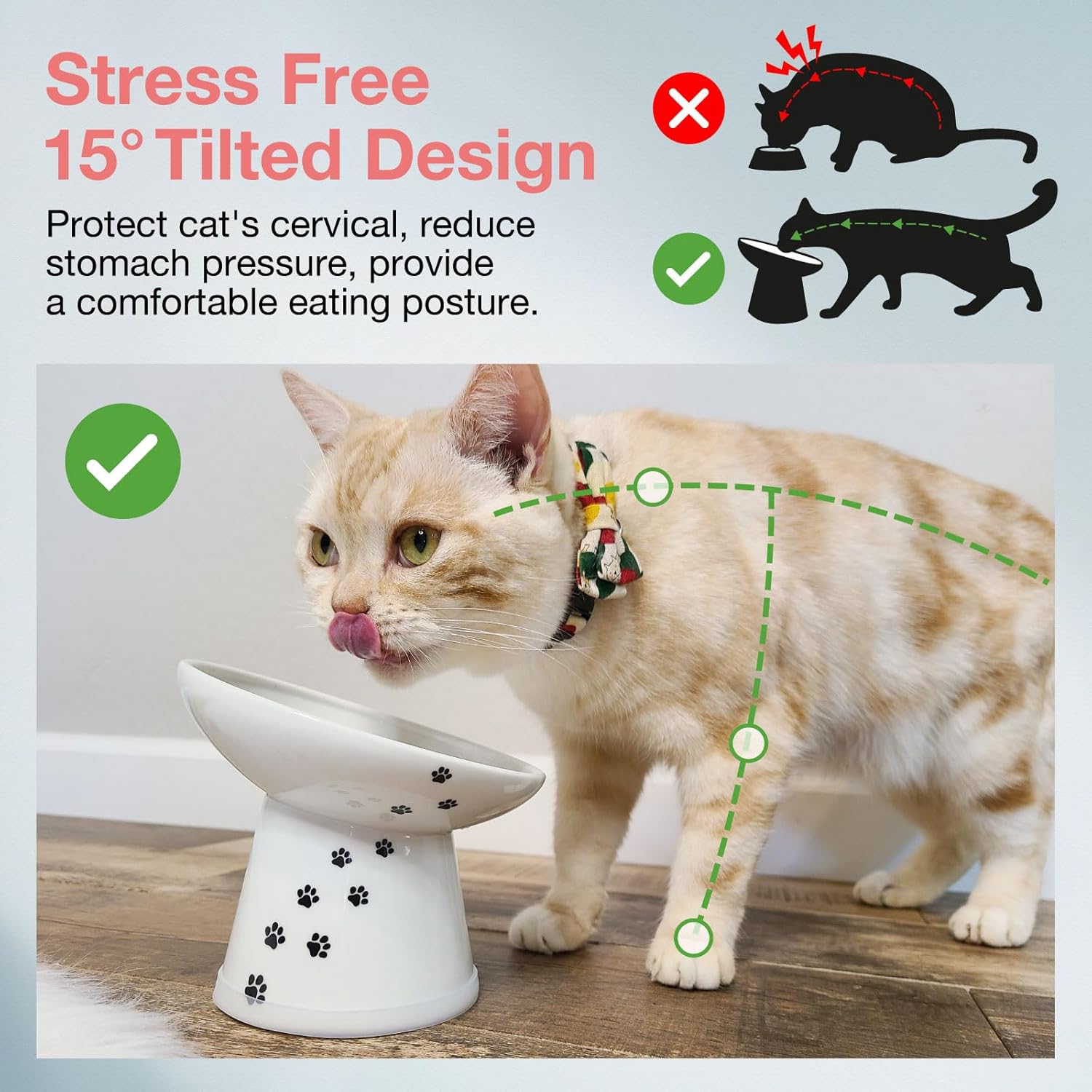 - Our first tilted bowl is joining Necoichi’s Raised Food Bowl lineup! Food stays centered, and the tilted lip makes it easier for your cat to eat without whisker or neck fatigue from the perfect height.
