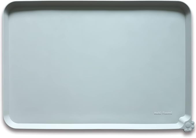 Hoki Found XX-Large Silicone Pet Food Mats Tray - Non Slip Pet Dog Cat Bowl Mats Placemat - Pet Water Mats for Carpet -Dog Pet Cat Feeding Mat - Waterproof Dog Cat Food Mats -Battleship