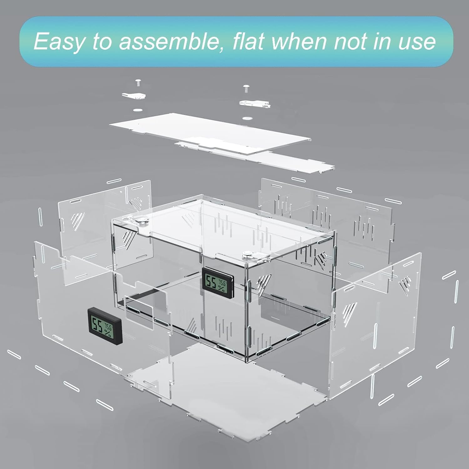 Reptile Terrariums, with Temperature Hygrometer, 11.8"x7.9"x5.9" Acrylic Reptile Breeding Box Terrarium Cage Tank for Small Reptile Insect Home Office