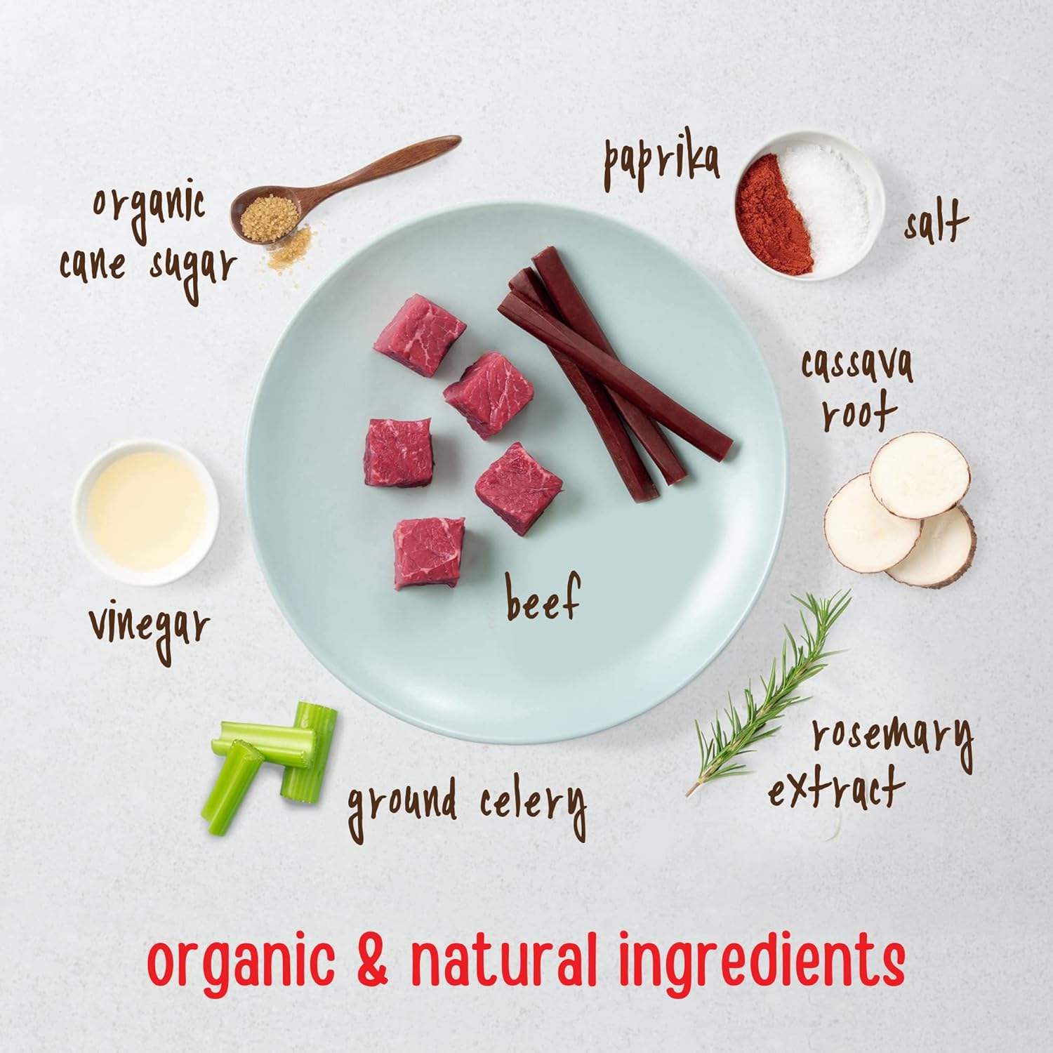 - ALL NATURAL: Our kitchen-crafted Essential Beef Savory Sticks are made from quality, 100% all natural ingredients and free range beef raised on family farms; Tear open a bag for lots of doggy kisses!