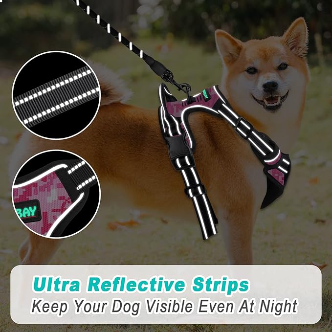 BARKBAY No Pull Dog Harness Large Step in Reflective Dog Harness with Front Clip and Easy Control Handle for Walking Training Running(Pink camo,M)