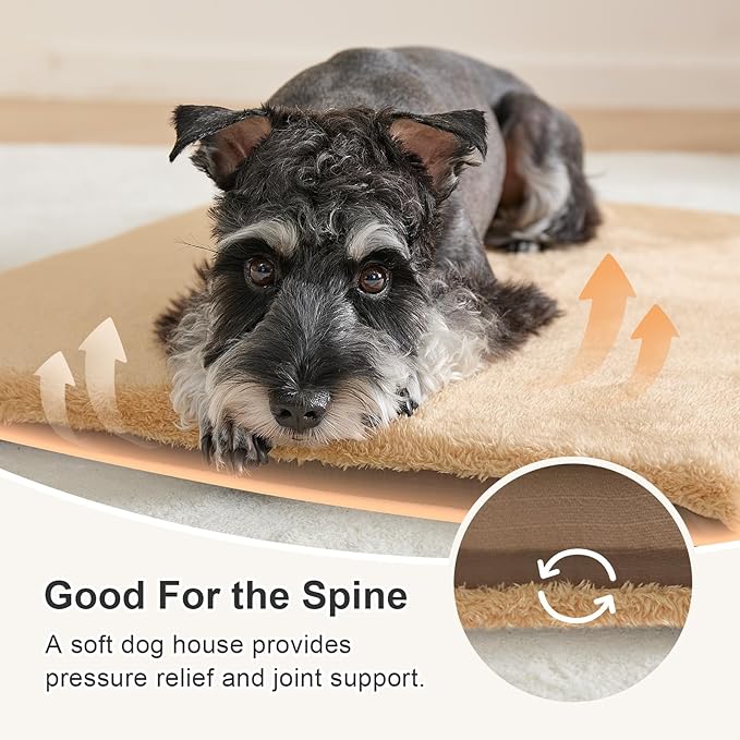 Jiupety Indoor Dog House, 2-in-1 Portable Foldable House Bed with Cover, Pet Tent & Cave Bed for Medium Dogs, XL(29"×21"×20"), Up to 44 Lb, Brown