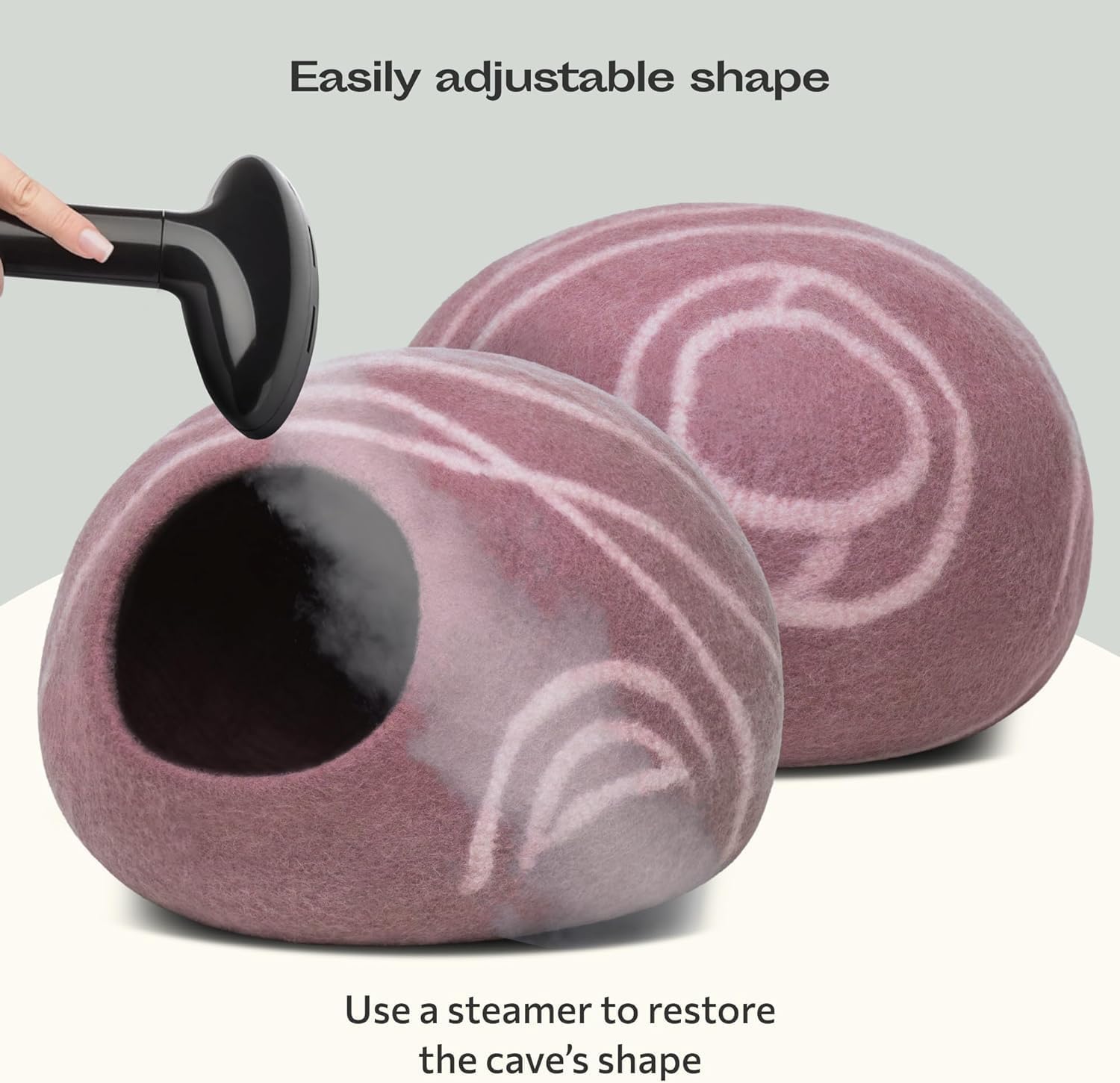 - DUAL USE: Our felted wool cat cave provides a private personal space for your cat to hide, sleep and rest inside. But it also can be used as a cat bed to lay, relax and play on the top. Meowfia cat bed cave helps keep your kitty warm in the winter, and cool in the summer.