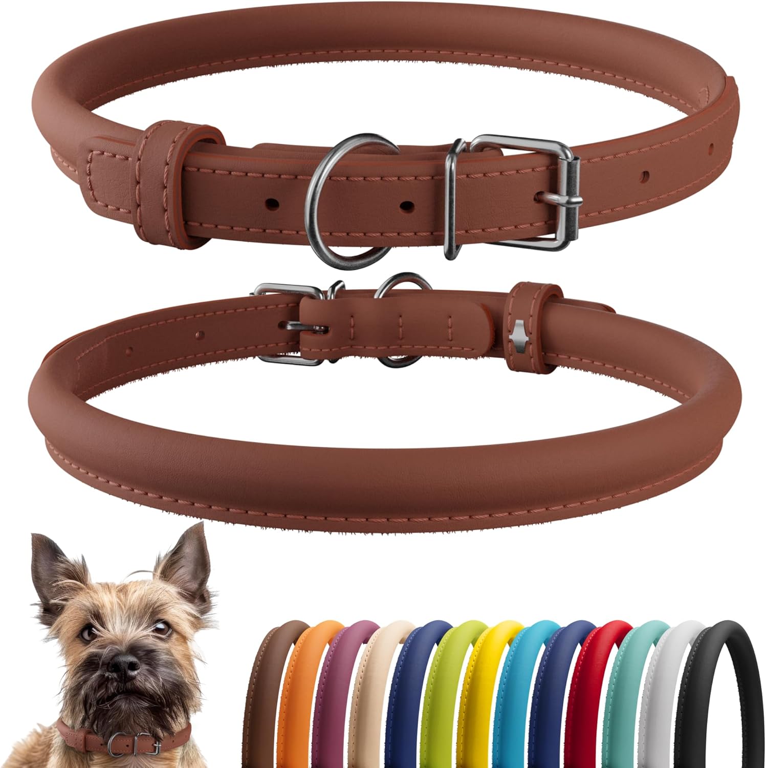 CollarDirect Rolled Leather Dog Collar, Soft Padded Round Puppy Collar, Handmade Genuine Leather Collar Dog Small Large Cat Collars 13 Colors (6 Inch, Cinnamon Smooth)
