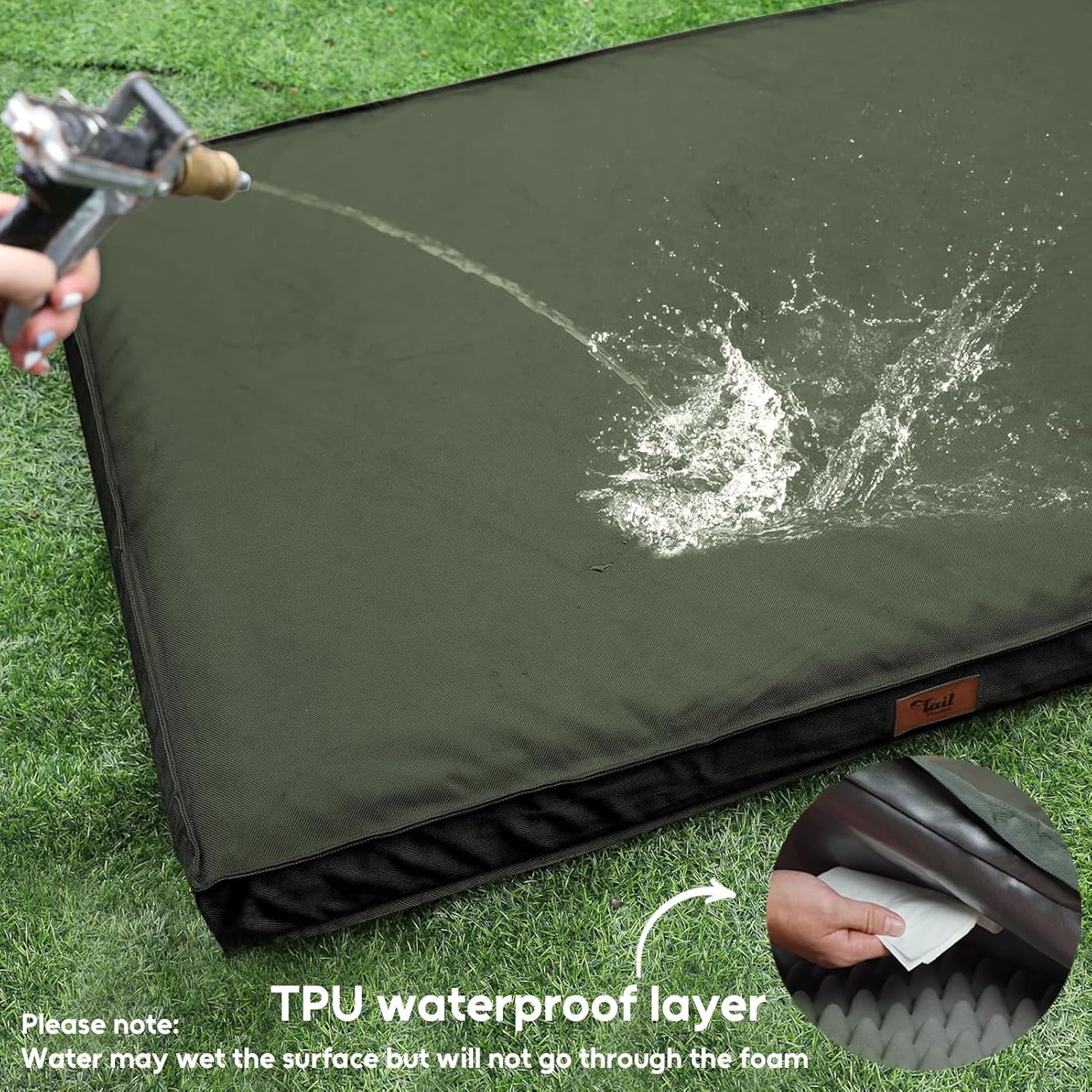 Outdoor All Weather Dog Bed, Waterproof Dog Bed for Medium Dogs, Orthopedic Egg Foam Pet Bed with Removable Cooling Cover, Dark Green