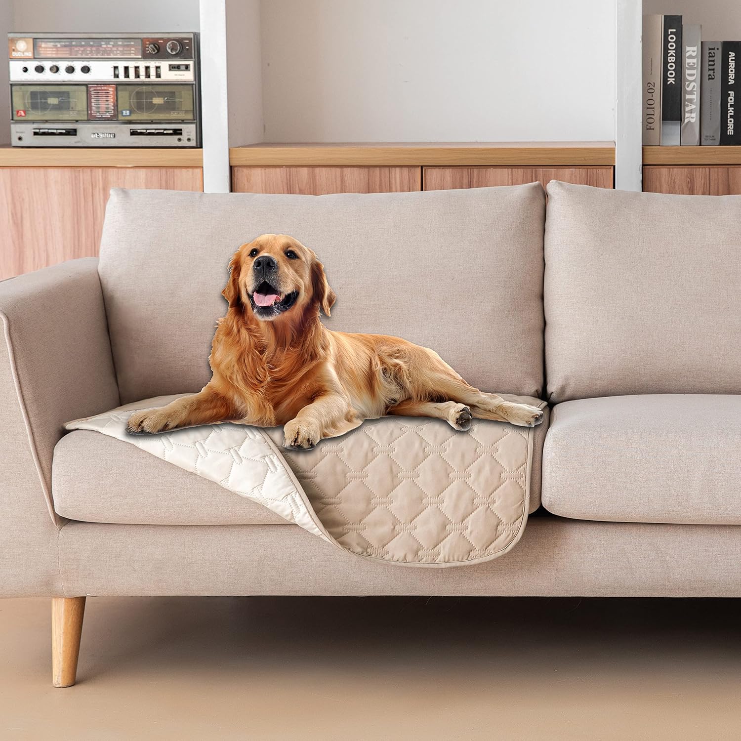 gogobunny 100% Double-Sided Waterproof Dog Bed Cover Pet Blanket Sofa Couch Furniture Protector for Puppy Large Dog Cat, Reversible (30x30 Inch (Pack of 1), Dark Beige/Light Beige)